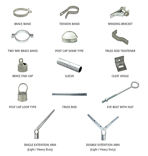 Accessories like Top rail, Line Wires, Line posts, Terminal posts etc and various other fittings required for erecting the fence can also be made available against separate order from buyers.